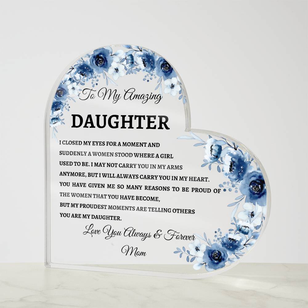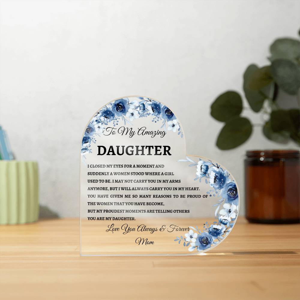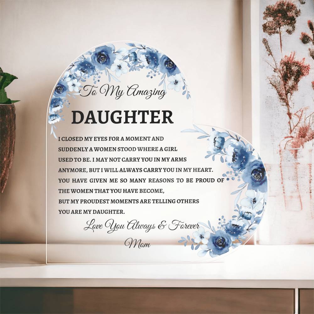 To My Amazing Daughter I Closed My Eyes Heart Acrylic